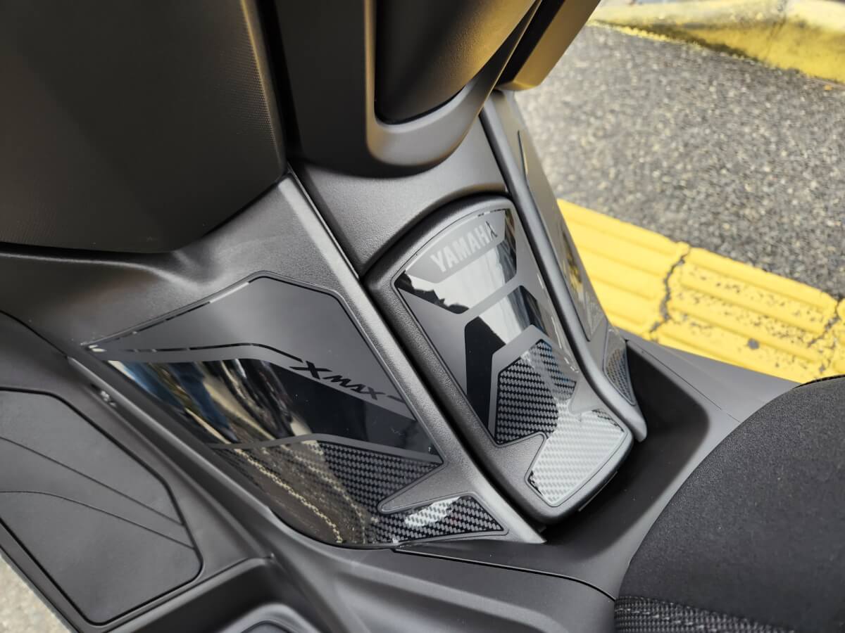 通常のXMAXとどのように違うの?っと気になるところですよね、それは、写真に分かるようにチタンサイレンサーの専用マフラーが装着され重量も3キロも軽くなってるんですね、サウンドは昔ビッグスクータブームのときの「ボェ~ボォ~」的なうるさいだけの下品なものではなく、音量もマフラー変えてるなぁ~と体感できサウンドもパッパッパッパッっといった単気筒ならではのスポーティーなサウンド。マフラーのほかに実は出力ベースで馬力が上がるカスタムがされているんですけど、それは実は秘密。数あるYSPでも14店舗のみの取り扱いに限定されたものになるんですね。日産ならnismo、トヨタなTRD、ホンダなら無限、マツダならマツダスピード、スバルならSTI、三菱ならラリーアート、スズキならスズキスポーツみたいな感じと言えばわかりやすいかな?元々スポーティースクーターをさらにバージョンアップさせた仕様となってるんですね。